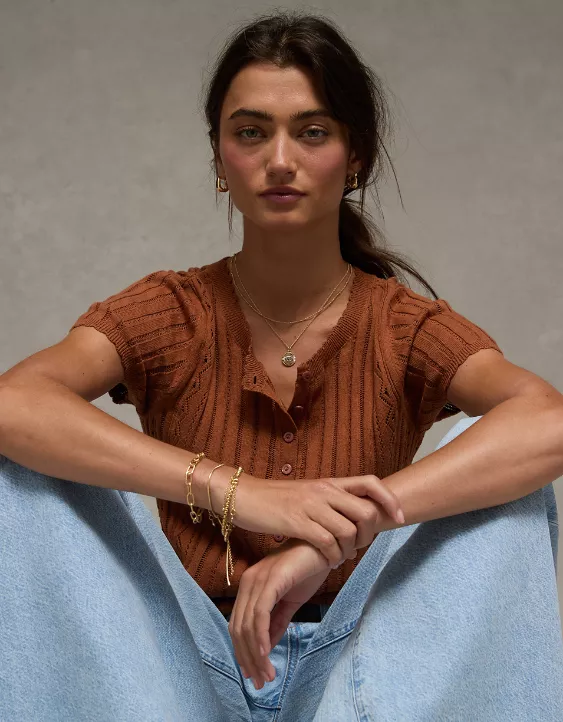 AE Henley Pointelle Sweater T-Shirt